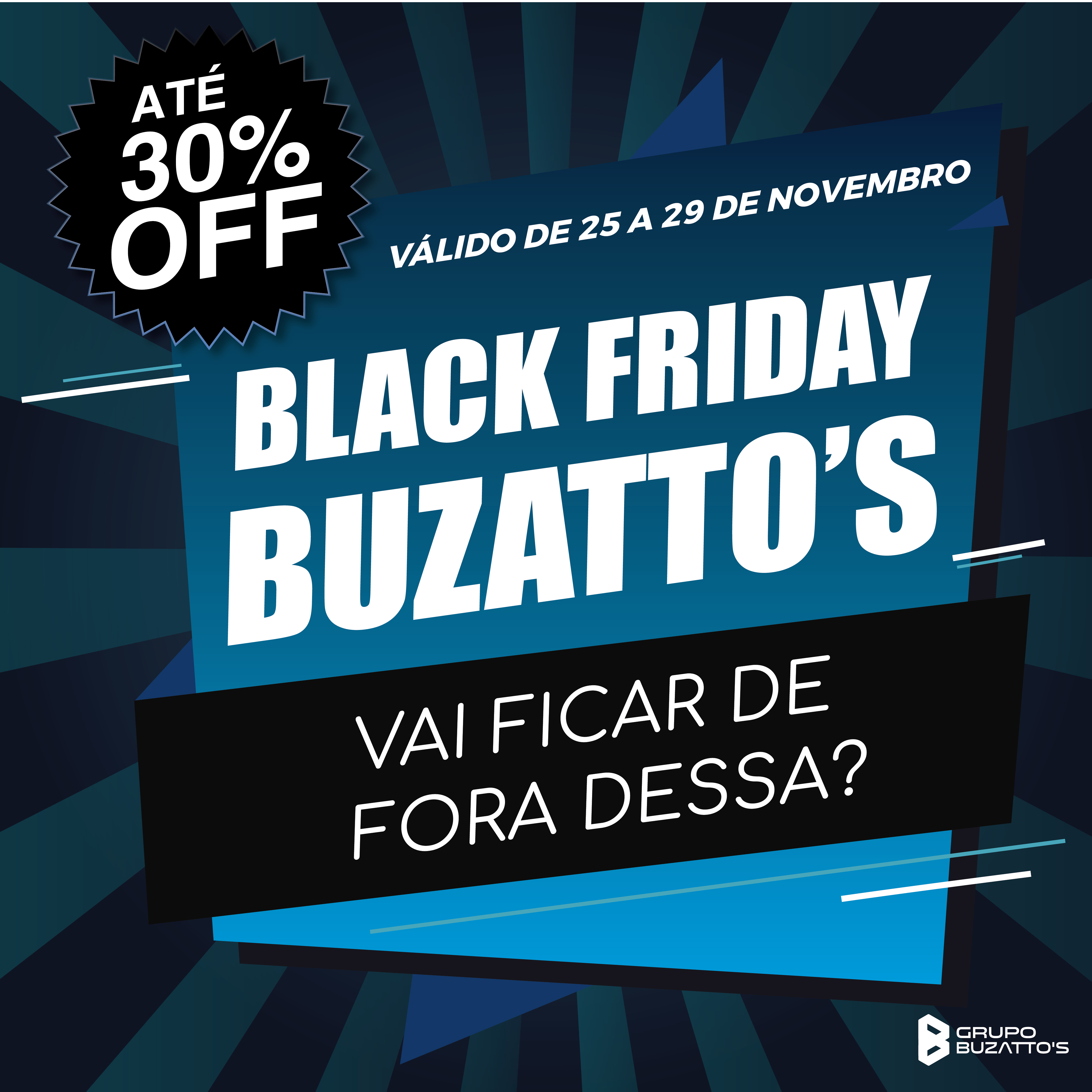 De 25 a 29 de novembro, semana Black Friday, o Grupo Buzatto’s vai oferecer até 30% de desconto nos produtos. “Criamos essa promoção estendida para dar aos clientes a oportunidade de renovarem seus ambientes com nossas soluções”, explica o diretor comercial Renato Diniz.
